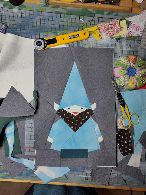 | Eine Gelegenheit, ein paar Zierstiche zu testen: Der Gnom bekommt noch grün um die Füße. |